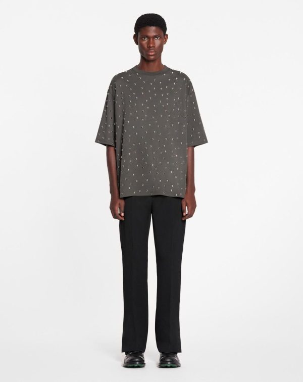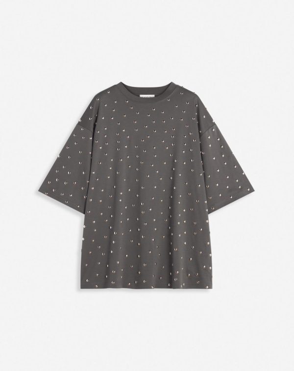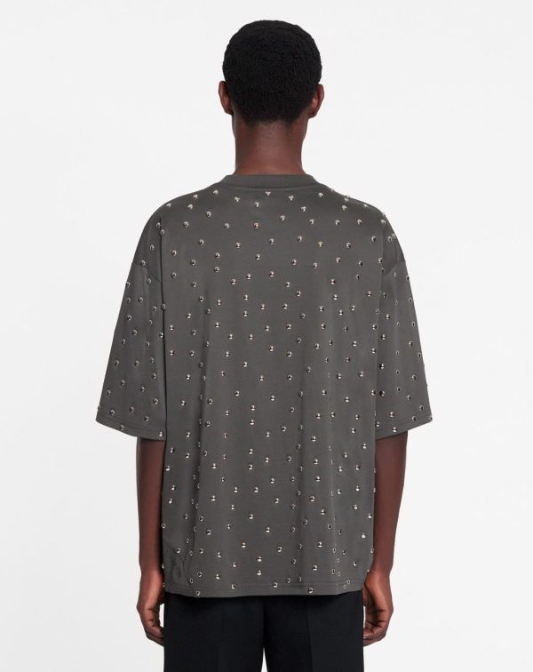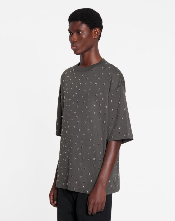 Elevate your casual wardrobe with this striking oversized T-shirt featuring signature stud detailing that creates a sophisticated modern aesthetic perfect for fashion-forward individuals.